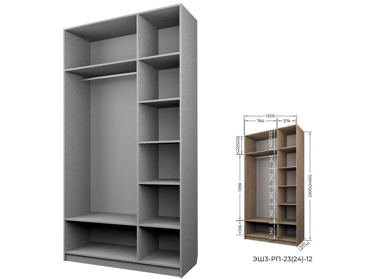 - Шкаф для Одежды Экон ЭШ3-РП-23-12