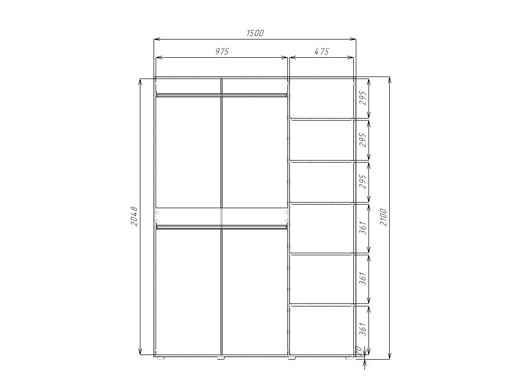 - Шкаф Гранд ГШК/2-21-15-222 (двери тип 2) с тремя зеркалами