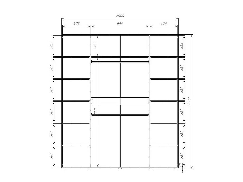 - Шкаф Гранд ГШК/2-23-20-2222 (двери тип 2) с двумя зеркалами