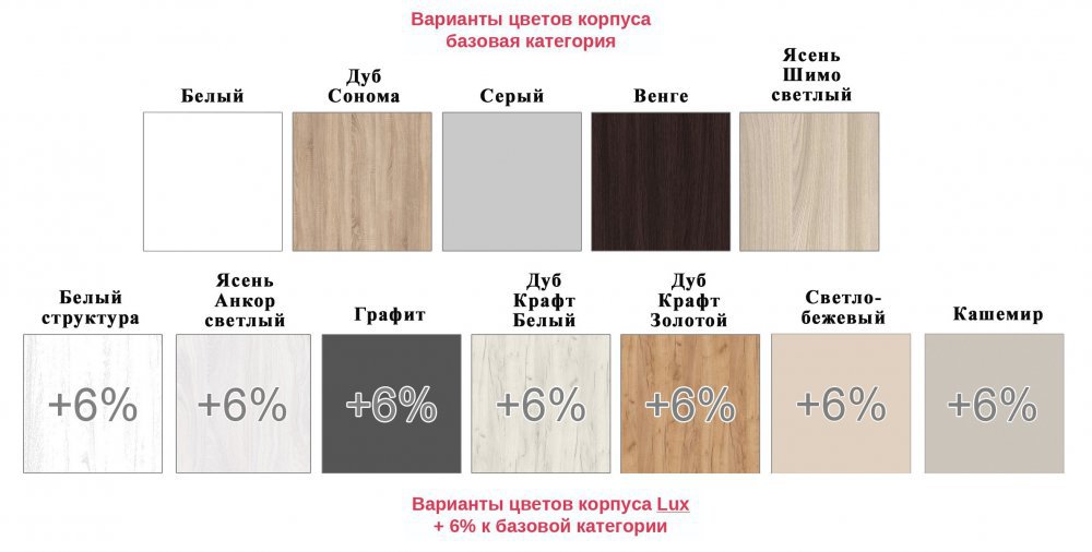 - Дуб крафт Белый (+6% к стоимости)