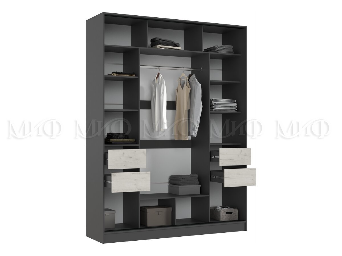 - Шкаф-купе 1800 Роджина Графит/Дуб Крафт Белый