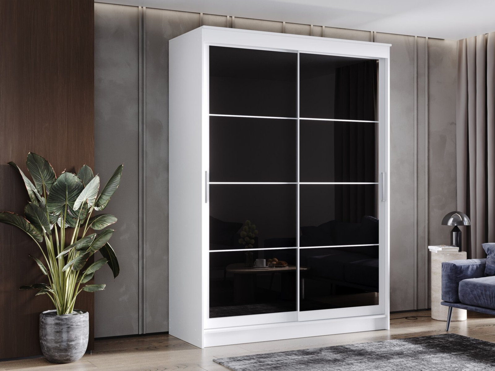Шкаф-купе Гранд-1 1600 Белый гладкий-двери Лакобель черный