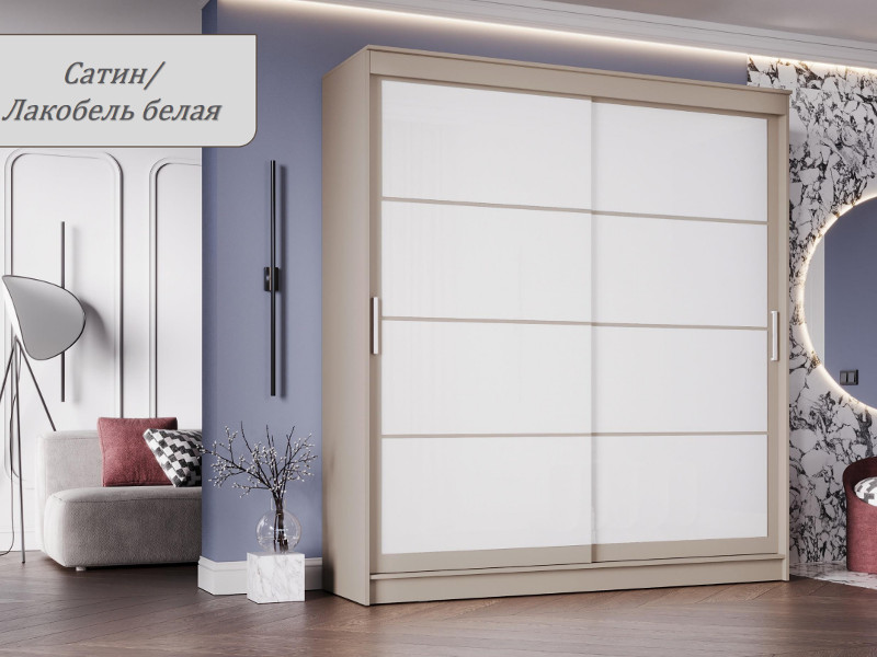 - Шкаф-купе Гранд-1 2000 Сатин-двери Лакобель белый