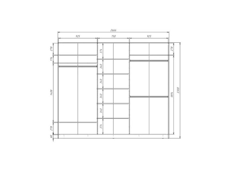 - 3 двери верхняя и нижняя вставка – Зеркало, центральная – ДСП 10 мм.