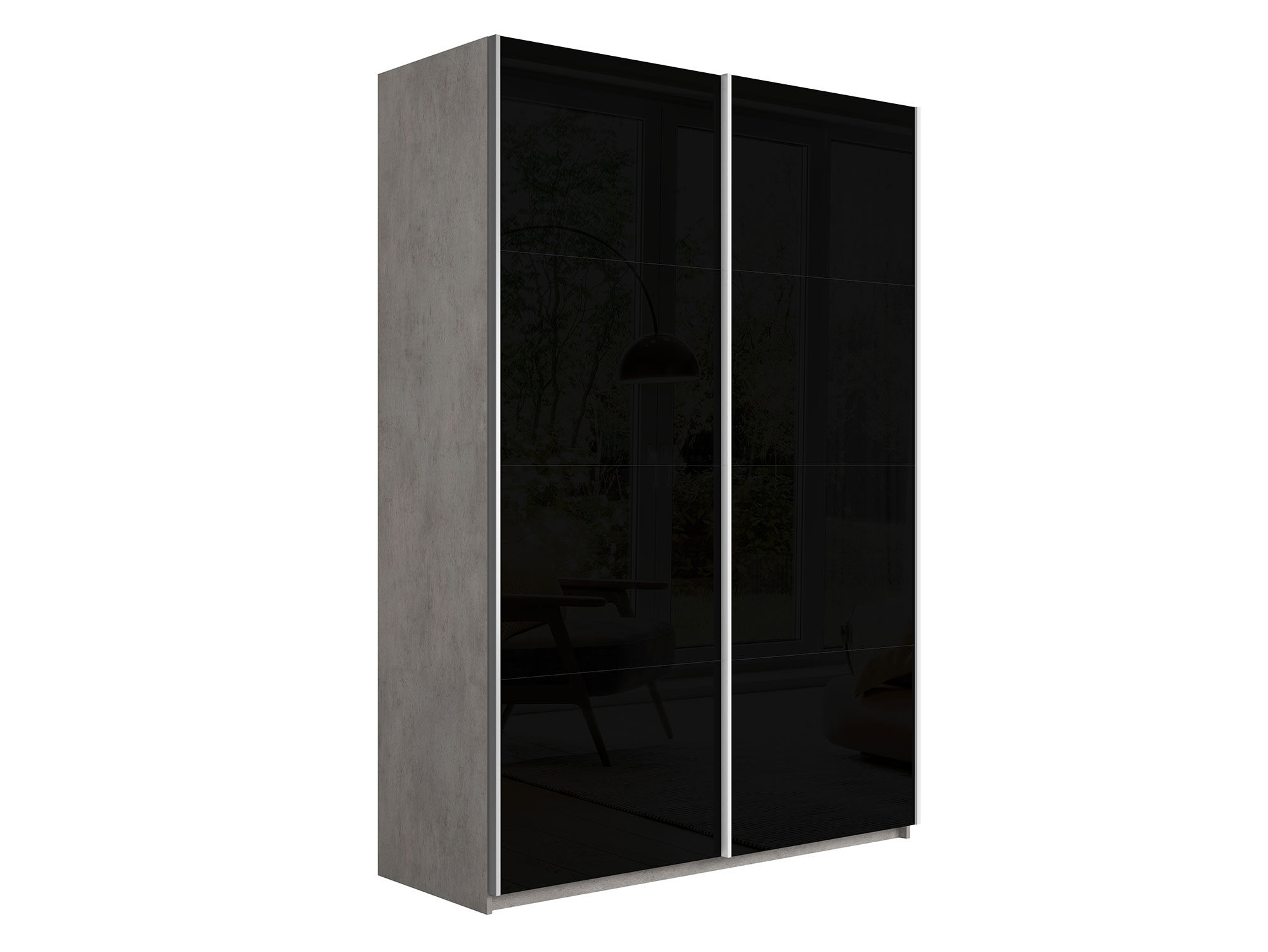 - Шкаф-купе Прайм 2-х дверный 1200 Стекло Черное Бетон