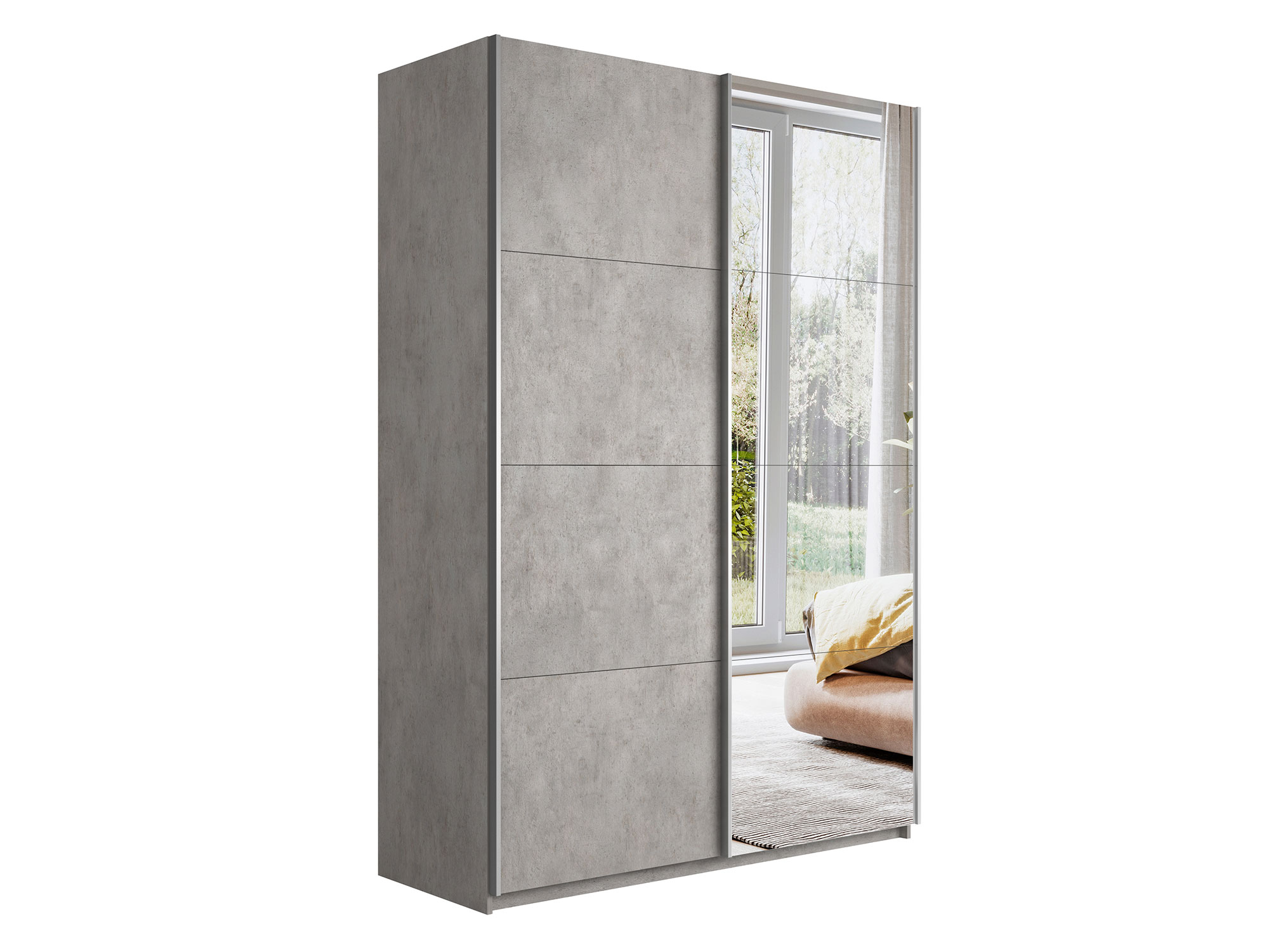 - Шкаф-купе Прайм 2-х дверный 1200 Зеркало/ДСП Бетон