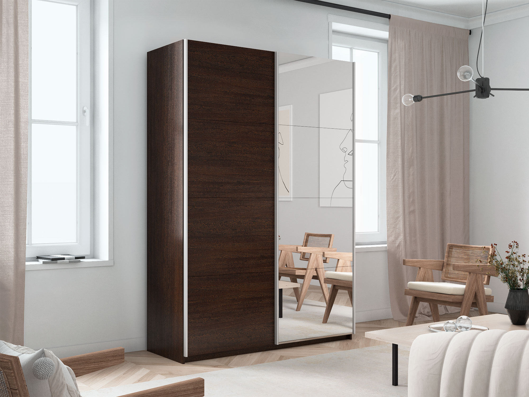 - Шкаф-купе Прайм 2-х дверный 1400 Зеркало/ДСП Венге