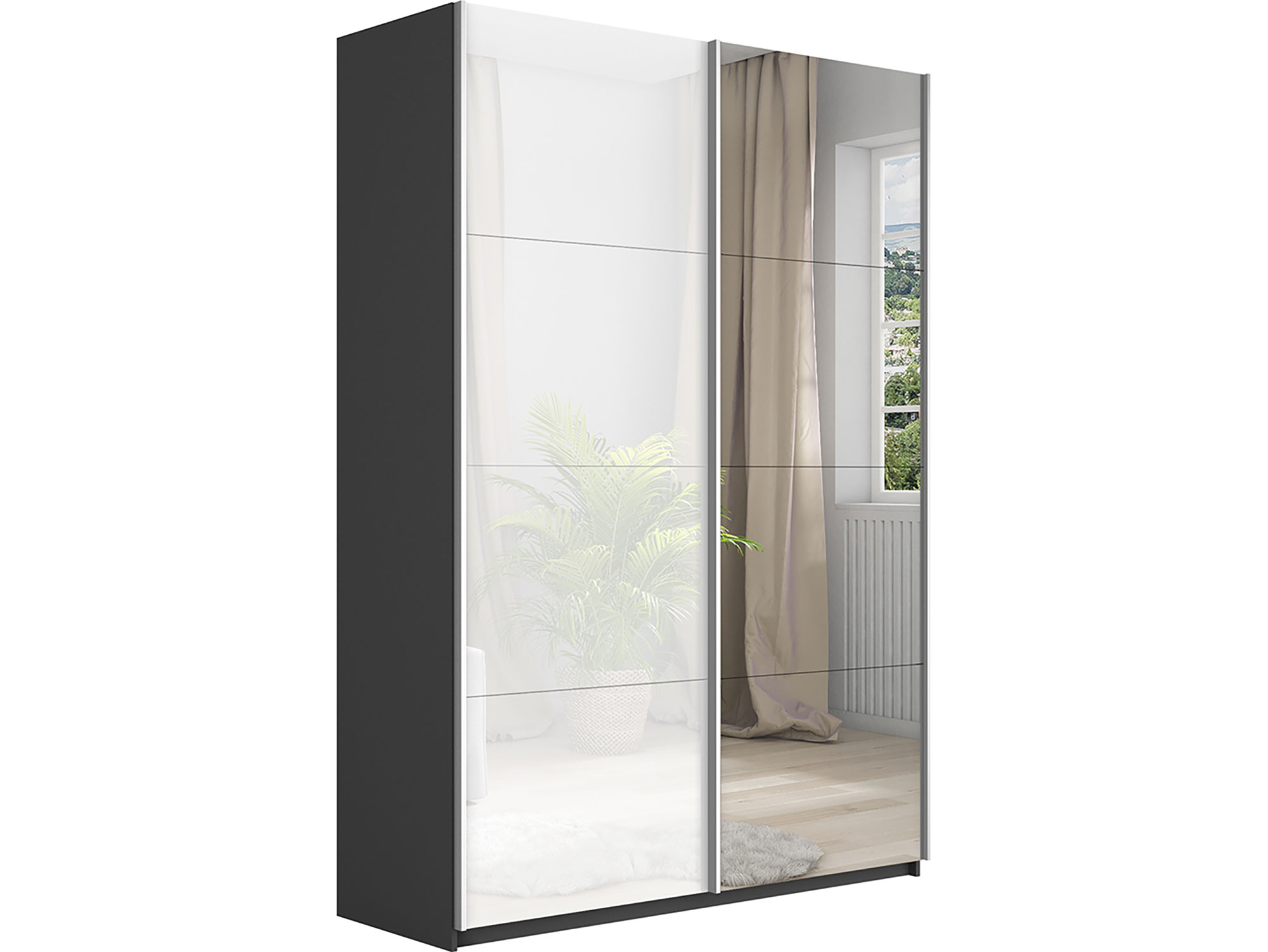 Шкаф-купе Прайм 2-х дверный 1400 Зеркало/Стекло Белое Серый Диамант