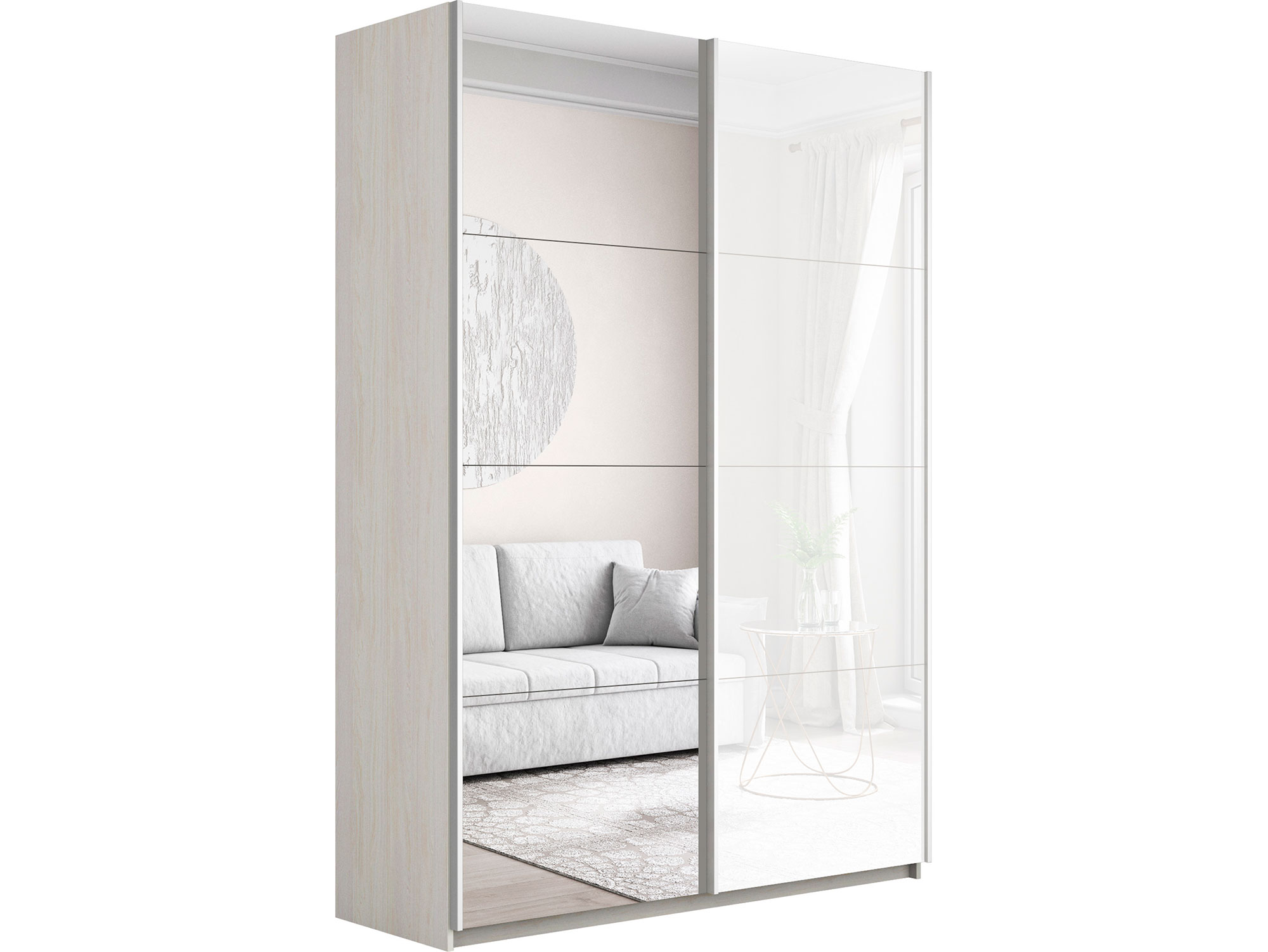 Шкаф-купе Прайм 2-х дверный 1400 Зеркало/Стекло Белое Ясень Анкор Светлый