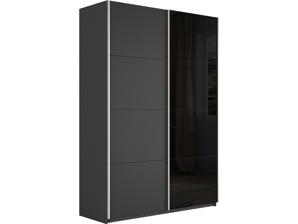 - Шкаф-купе Прайм 2-х дверный 1600 ДСП/Стекло Черное Серый Диамант