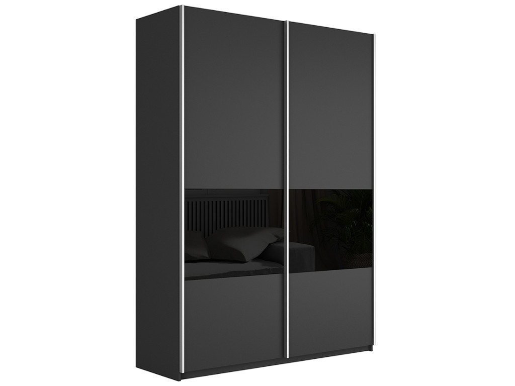 - Шкаф-купе Прайм 2-х дверный ДСП/вставки Стекло Черное Серый Диамант