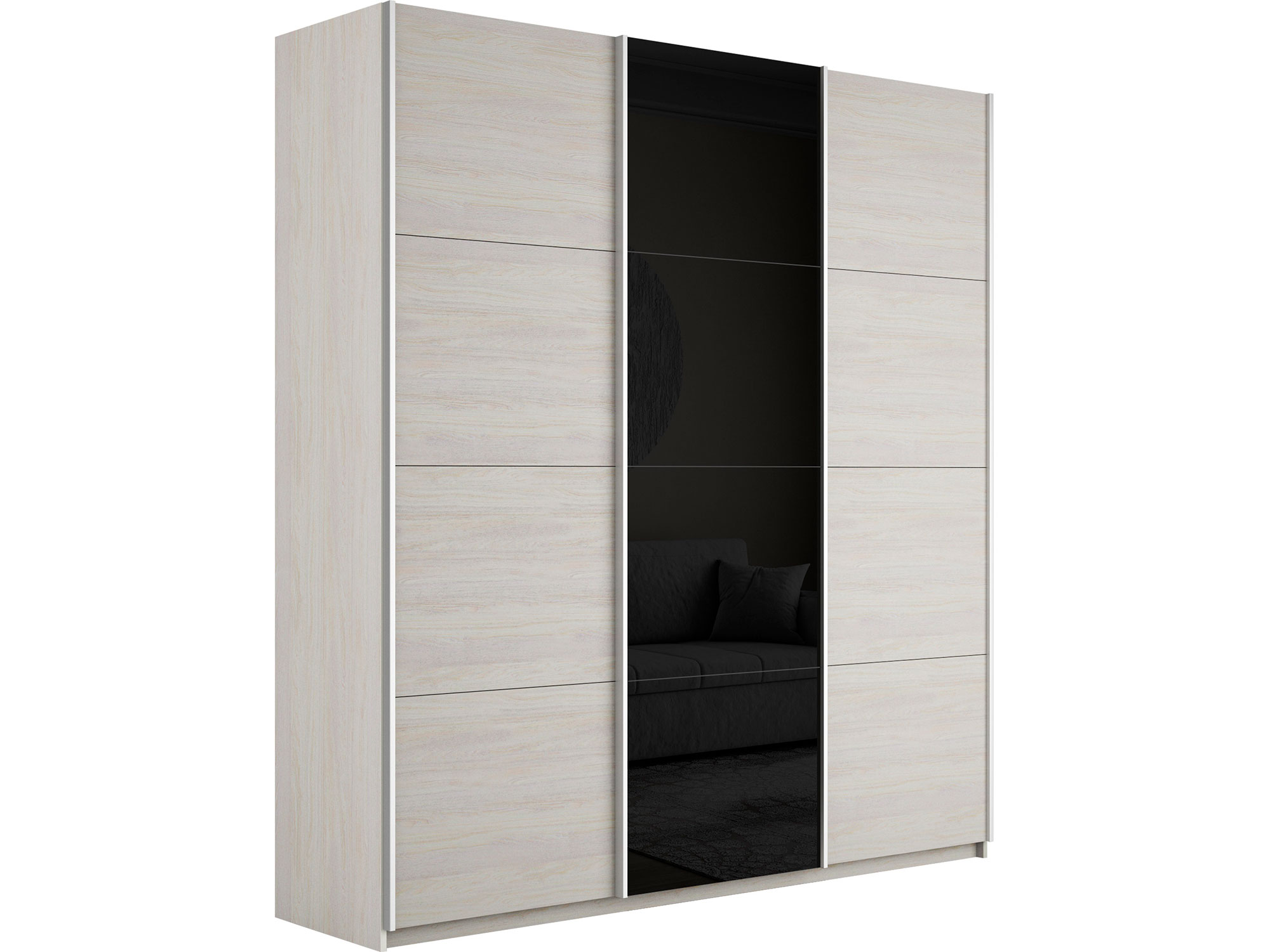 - Шкаф-купе Прайм 3-х дверный 1800 ДСП/Стекло Черное/ДСП Ясень Анкор Светлый