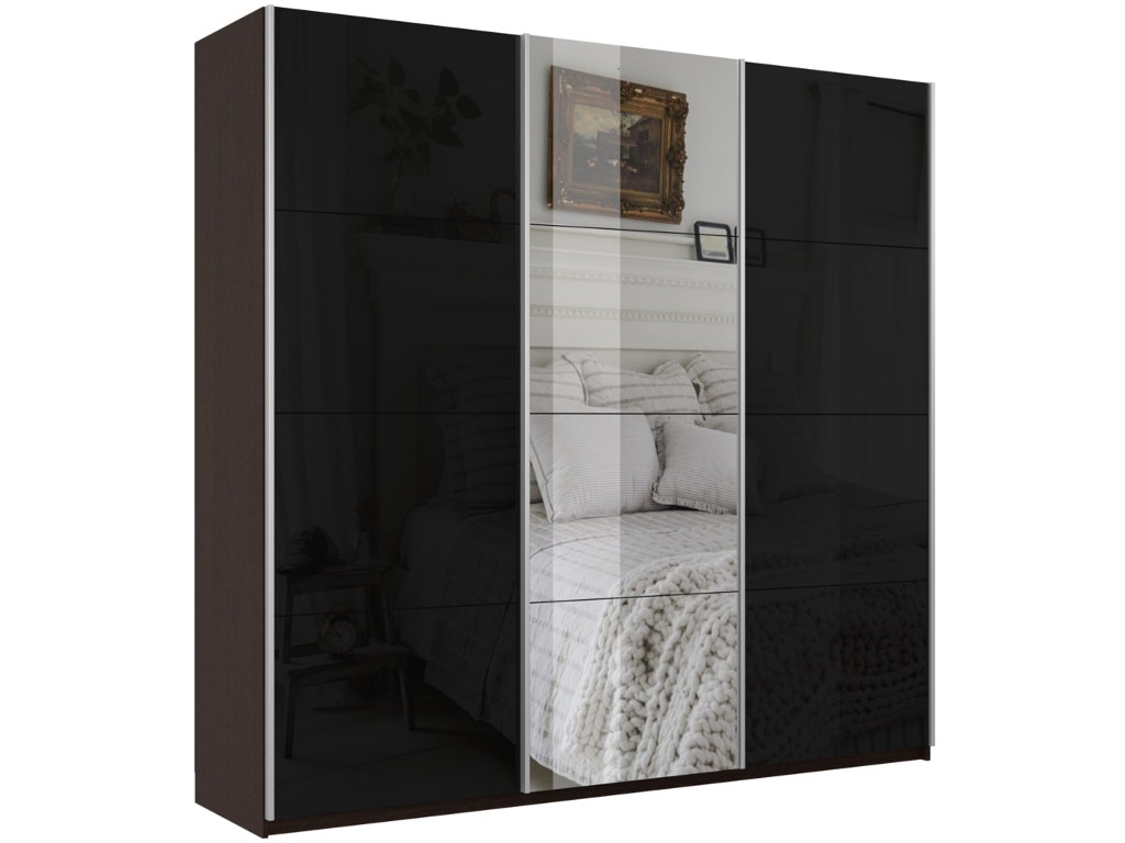 - Шкаф-купе Прайм 3-х дверный 1800 два Стекла Черные/Зеркало Венге