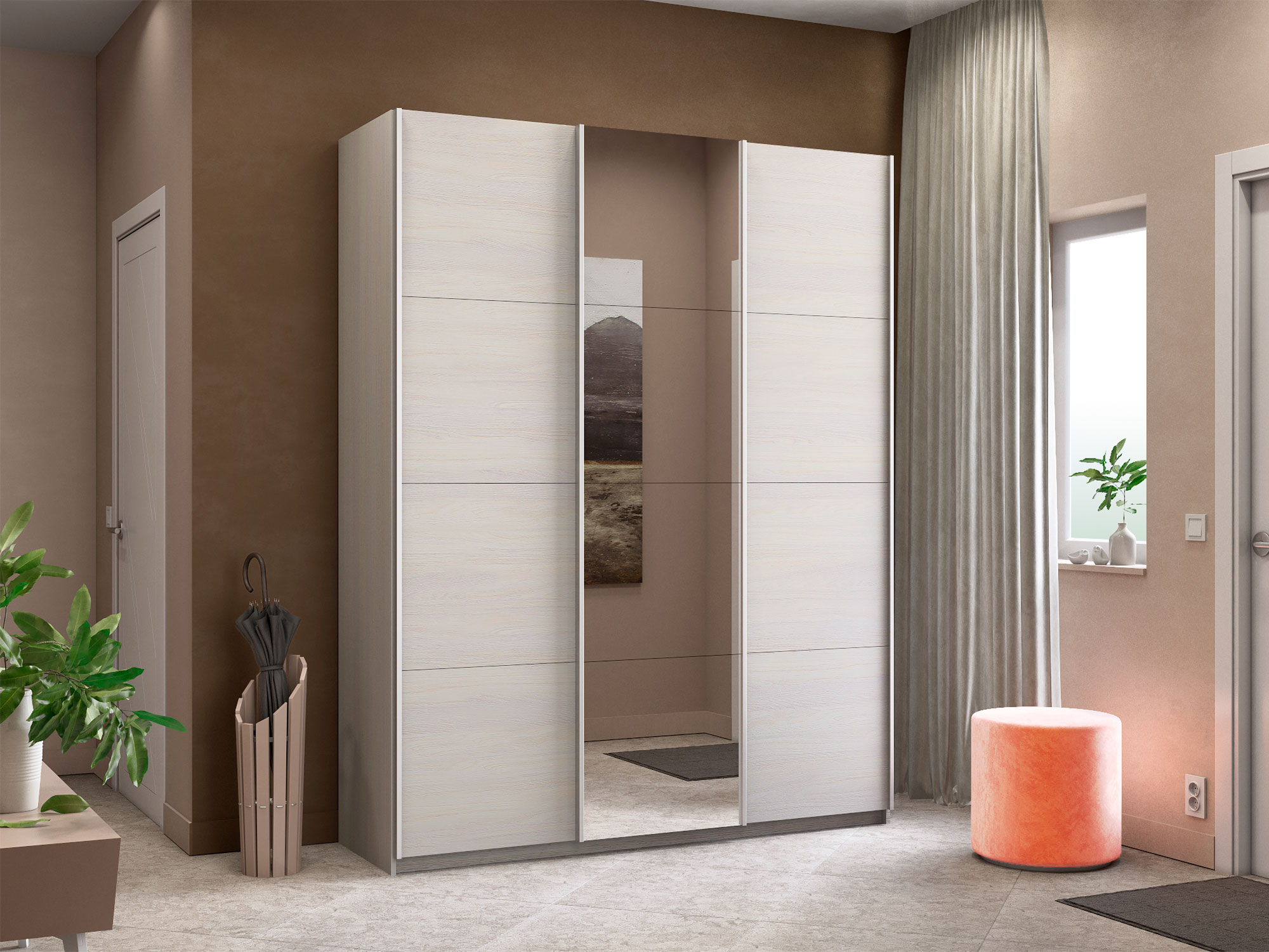 - Шкаф-купе Прайм 3-х дверный 2100 ДСП/зеркало/ДСП Ясень Анкор Светлый