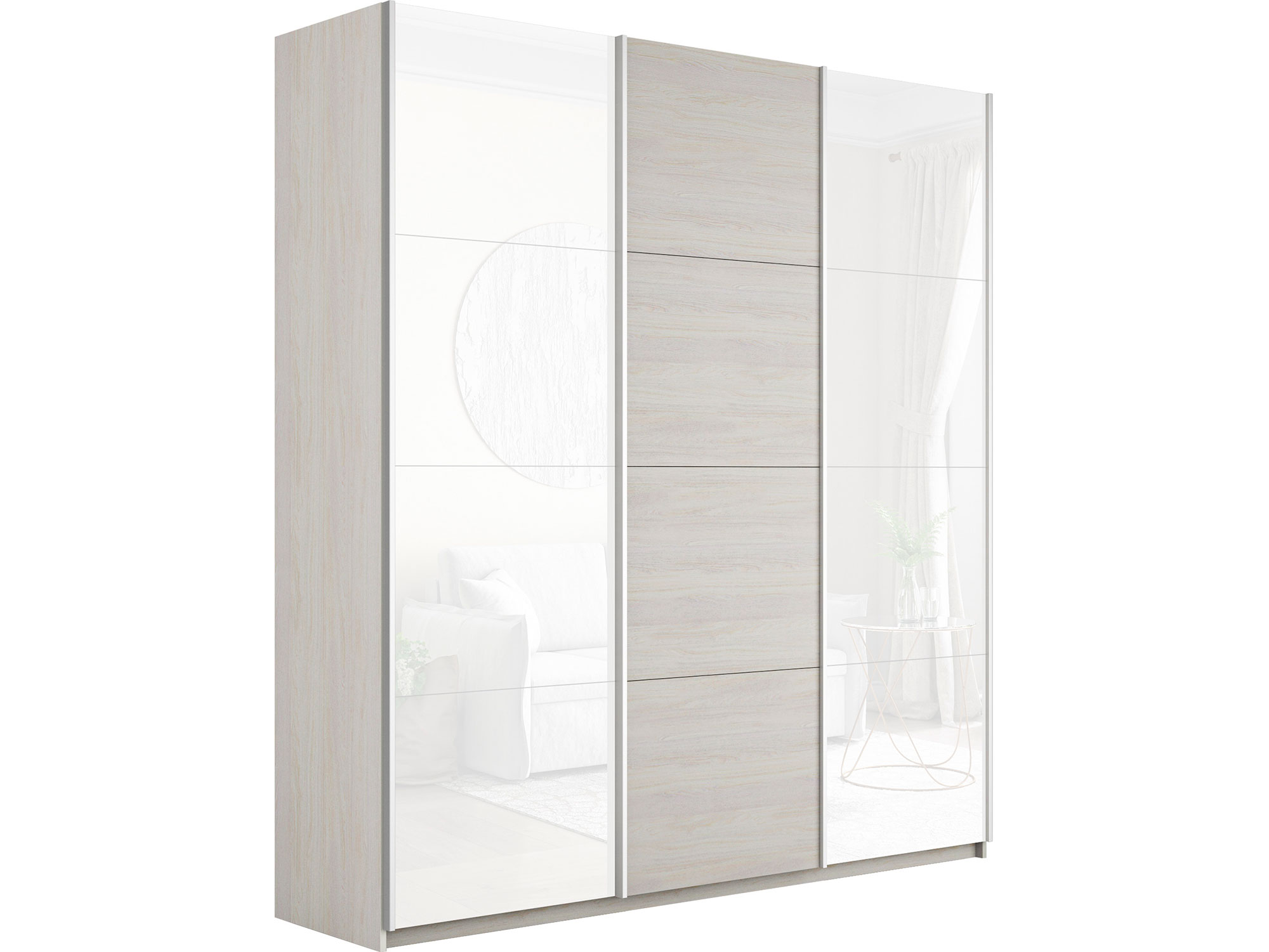 - Шкаф-купе Прайм 3-х дверный 2100 два Стекла Белые/ДСП Ясень Анкор Светлый
