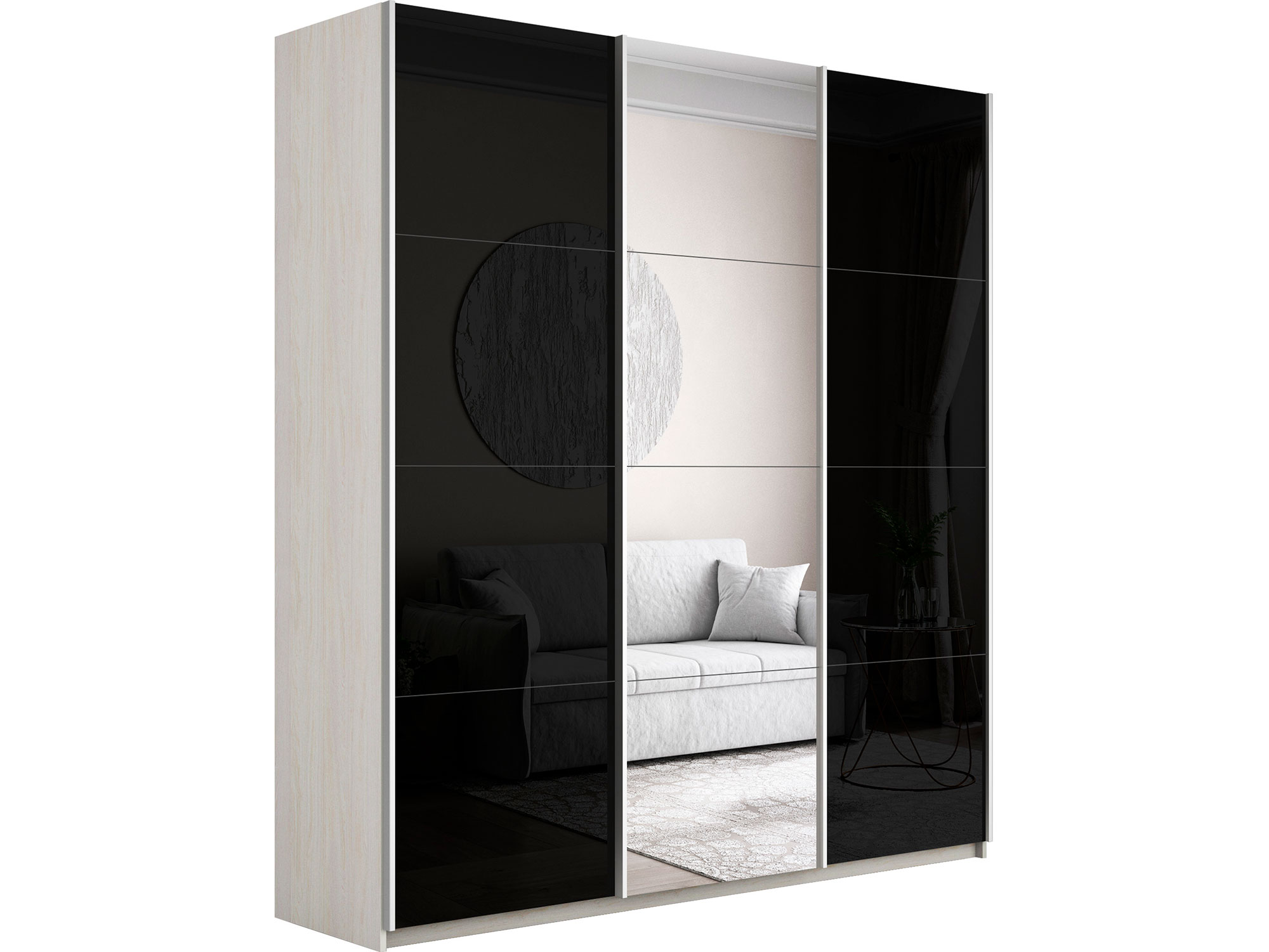 Материал фасада: Стекло (Черное)/Зеркало/Стекло (Черное)