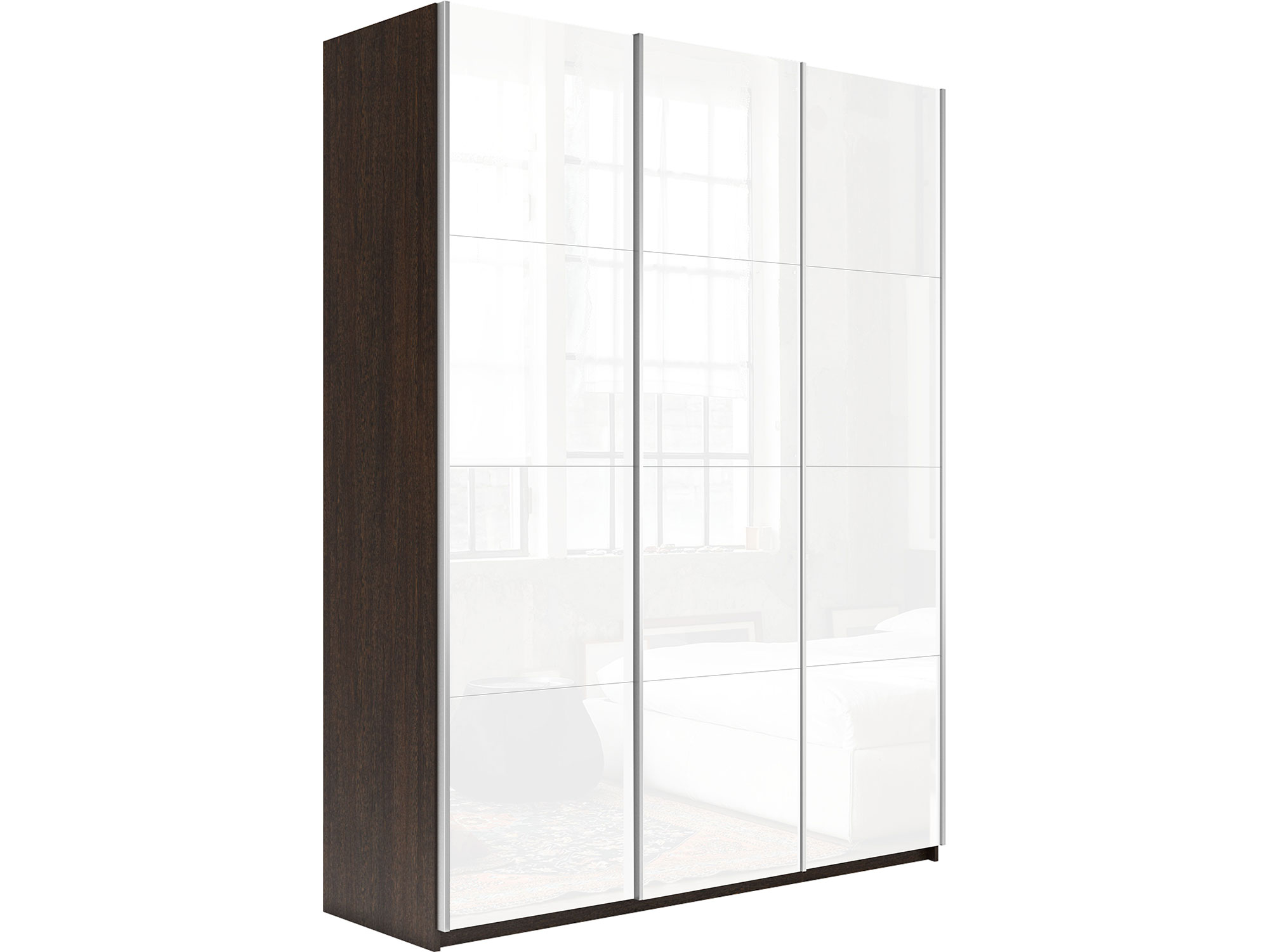 - Шкаф-купе Прайм 3-х дверный 2100 три стекла белые Венге