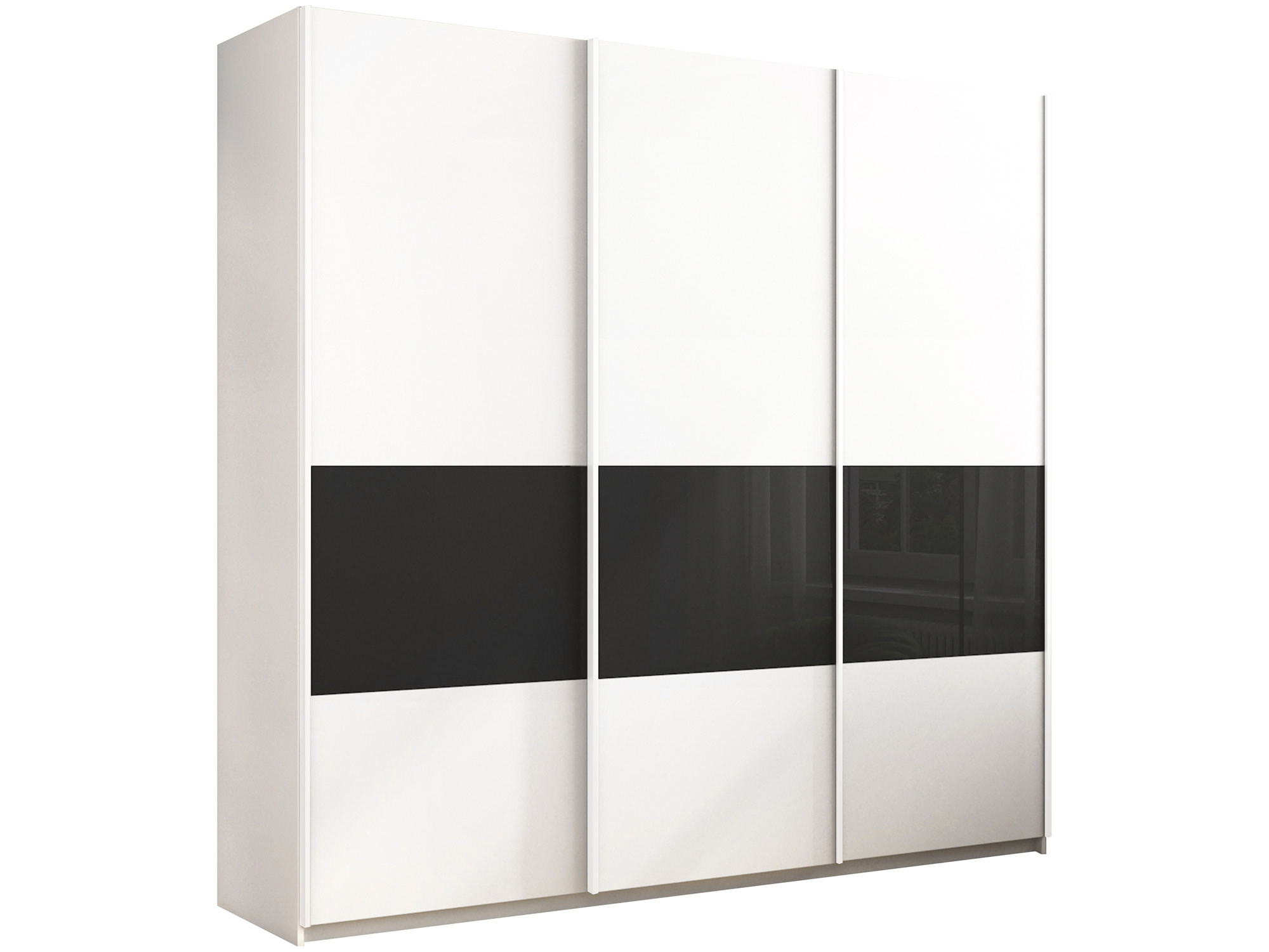 - Шкаф-купе Прайм Широкий 3-х дверный ДСП/вставки Стекло Черное Белый Снег