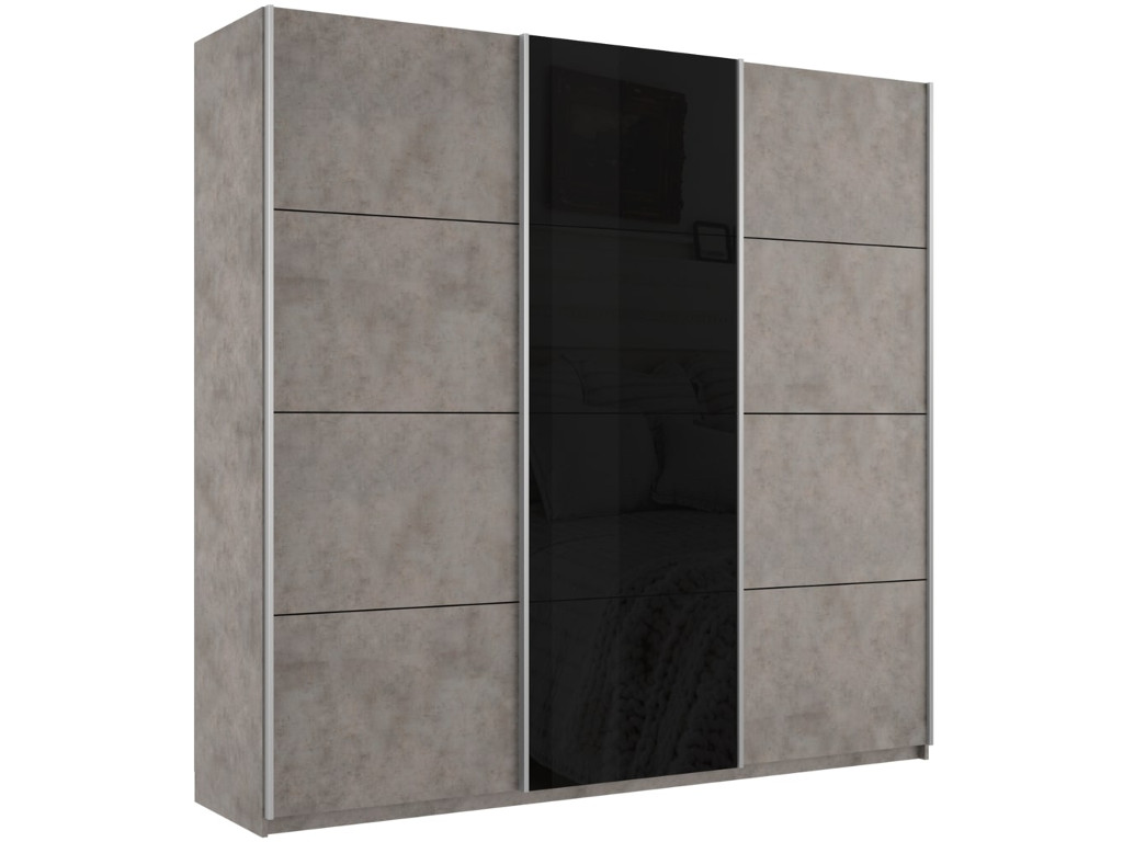 - Шкаф-купе Прайм Широкий 3-х дверный два ДСП/Стекло Черное Бетон