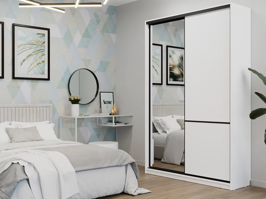 - Шкаф-купе СТМ Line 150х45 с зеркалом Белый