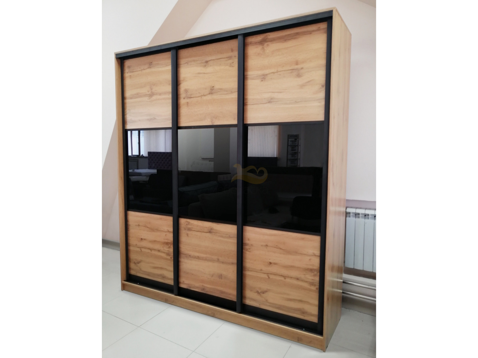 - Шкаф купе трехдверный 3 вставка стекло Дуб вотан 2400 мм