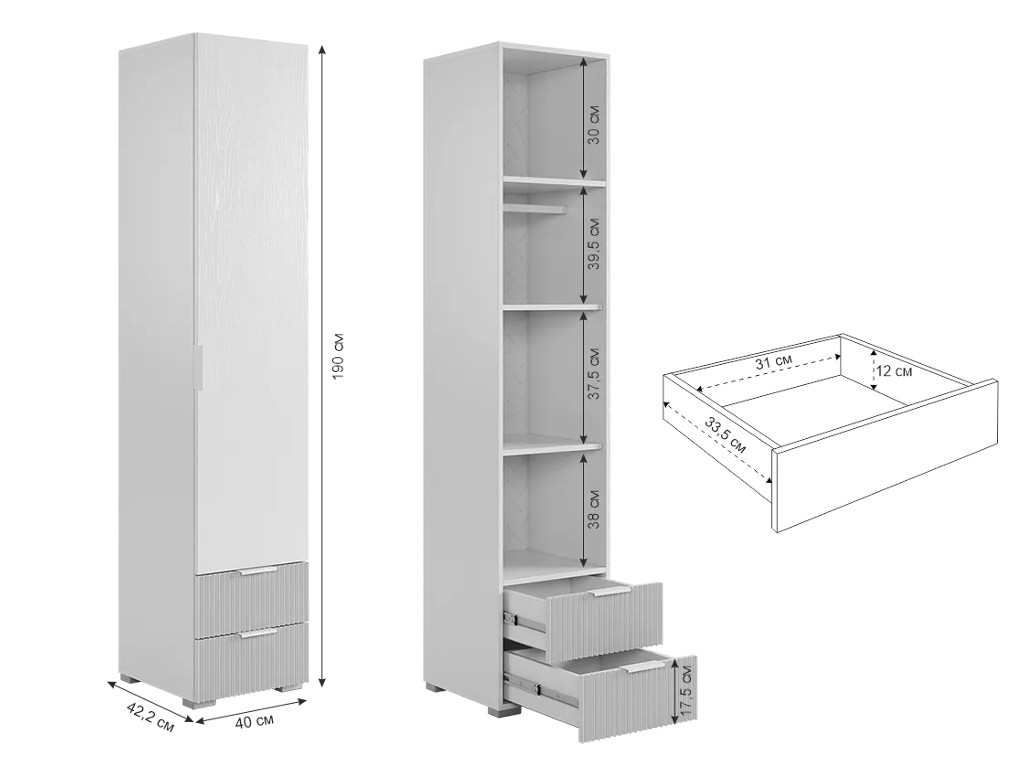 - Шкаф однодверный 107.01 Зефир белый