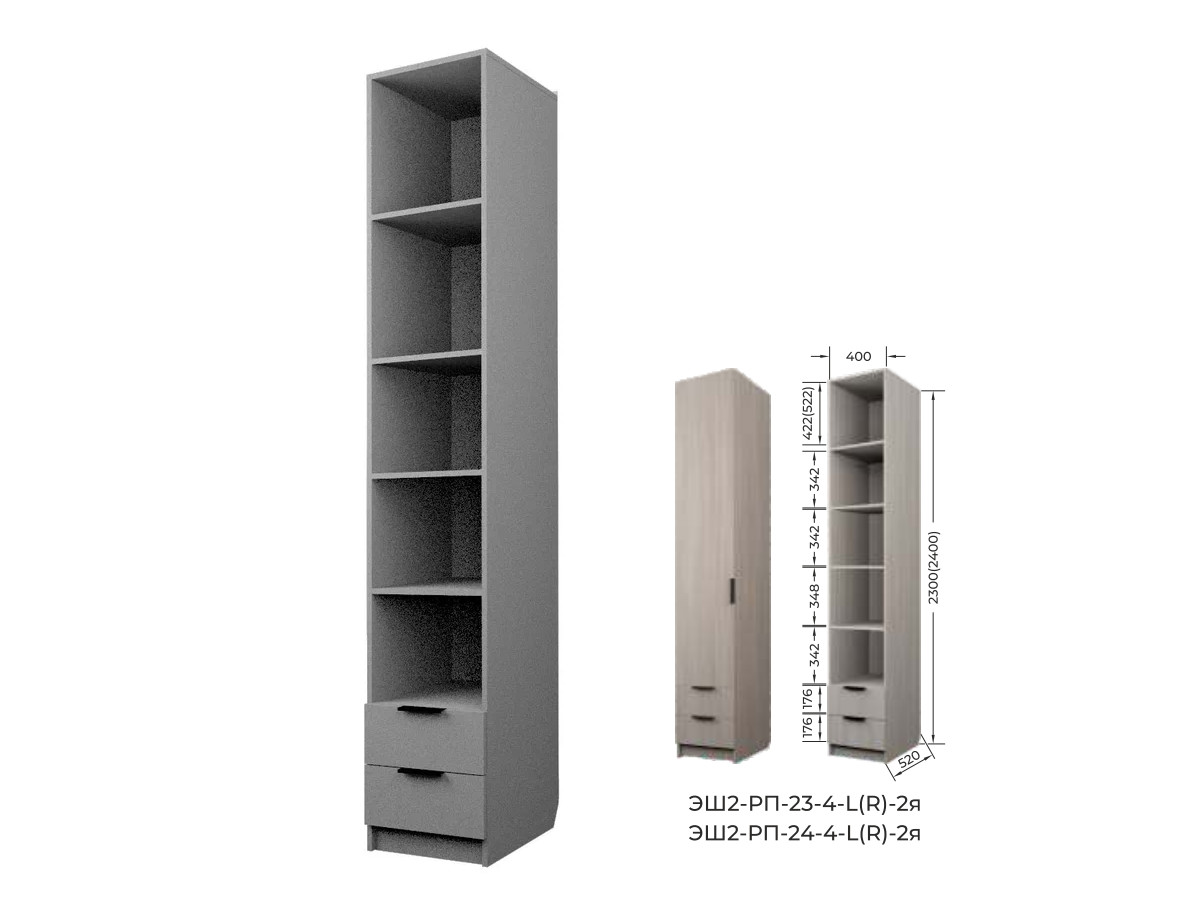 Комплект: ЭШ2-РП-23-4-R-2я,Шкаф с 2 ящиками + ЗС-23-2я,Зеркало для шкафов ЭШ 2300 мм