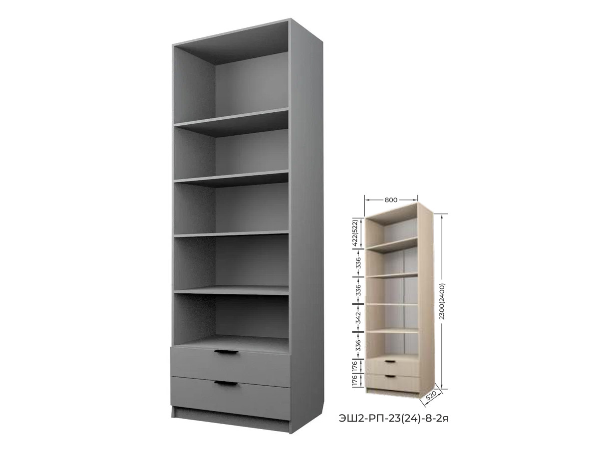 Шкаф с 2 ящиками с полками Экон ЭШ2-РП-24-8-2я с зеркалами