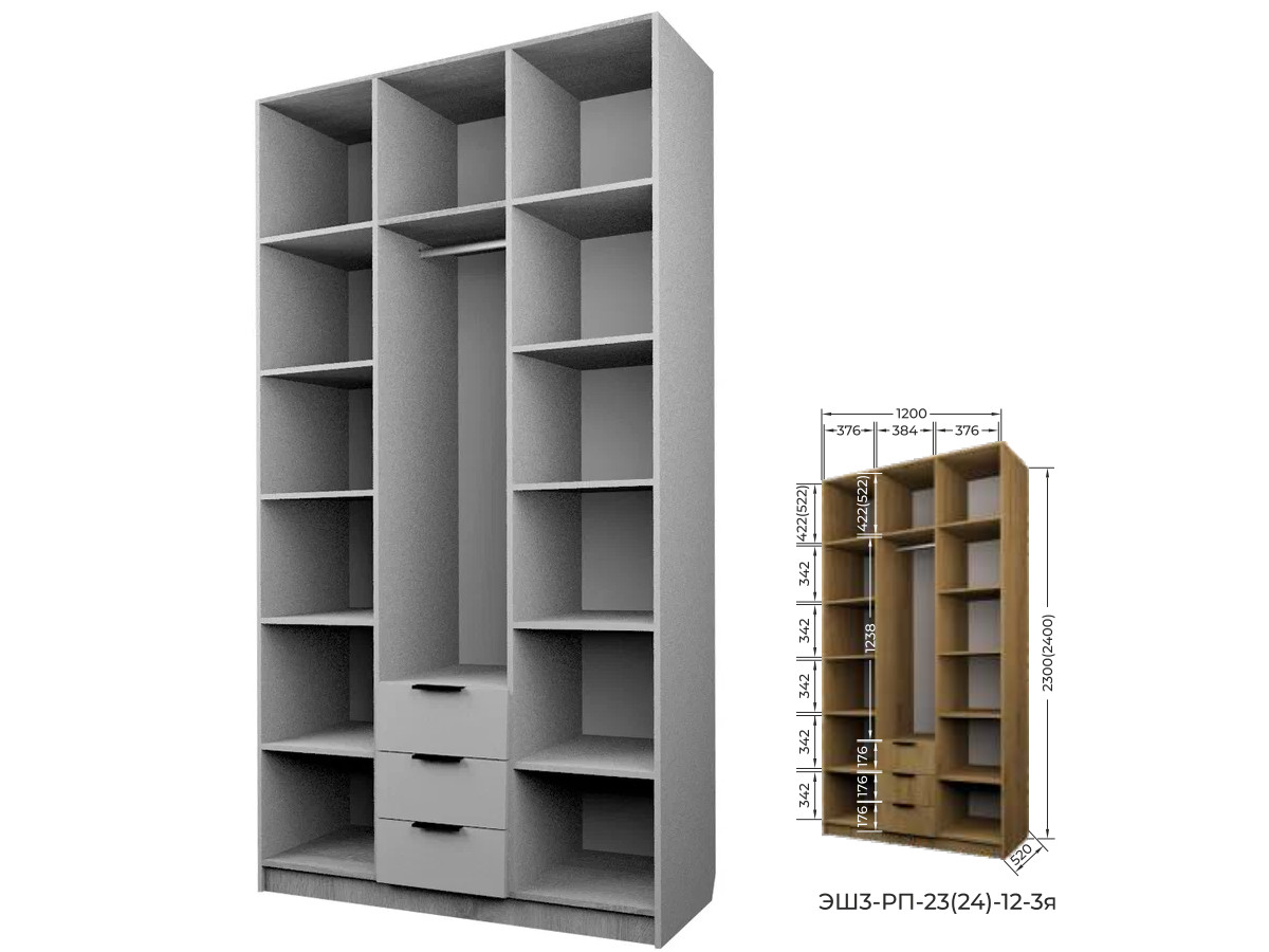 Комплект: ЭШ3-РП-24-12-3я, Шкаф с 3 ящиками + ЗС-24-3я,Зеркало для шкафов ЭШ 2400 мм+ два ЗС-24, Зеркало для шкафов ЭШ 2400 мм