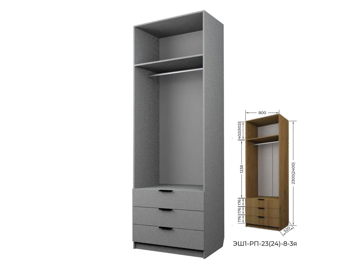 - Шкаф с 3 ящиками со штангой ЭШ1-РП-23-8-3я с зеркалами
