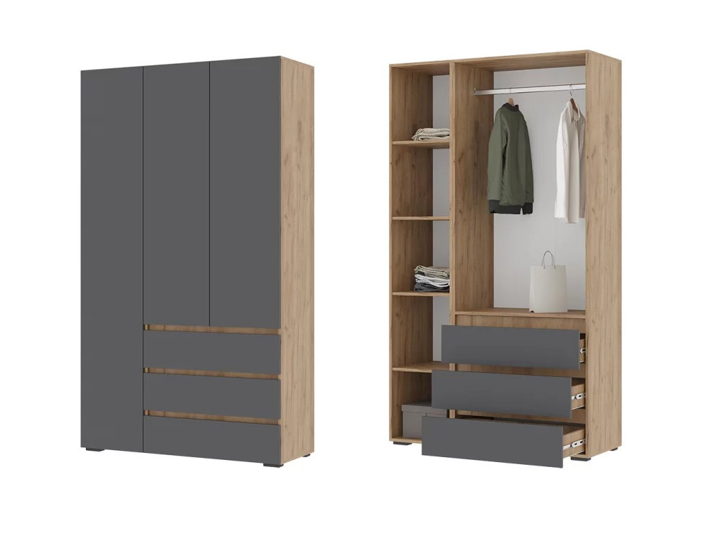 - Шкаф с ящиками Хелен 3-х створчатый ШК 06 Дуб крафт золотой-Серый графит
