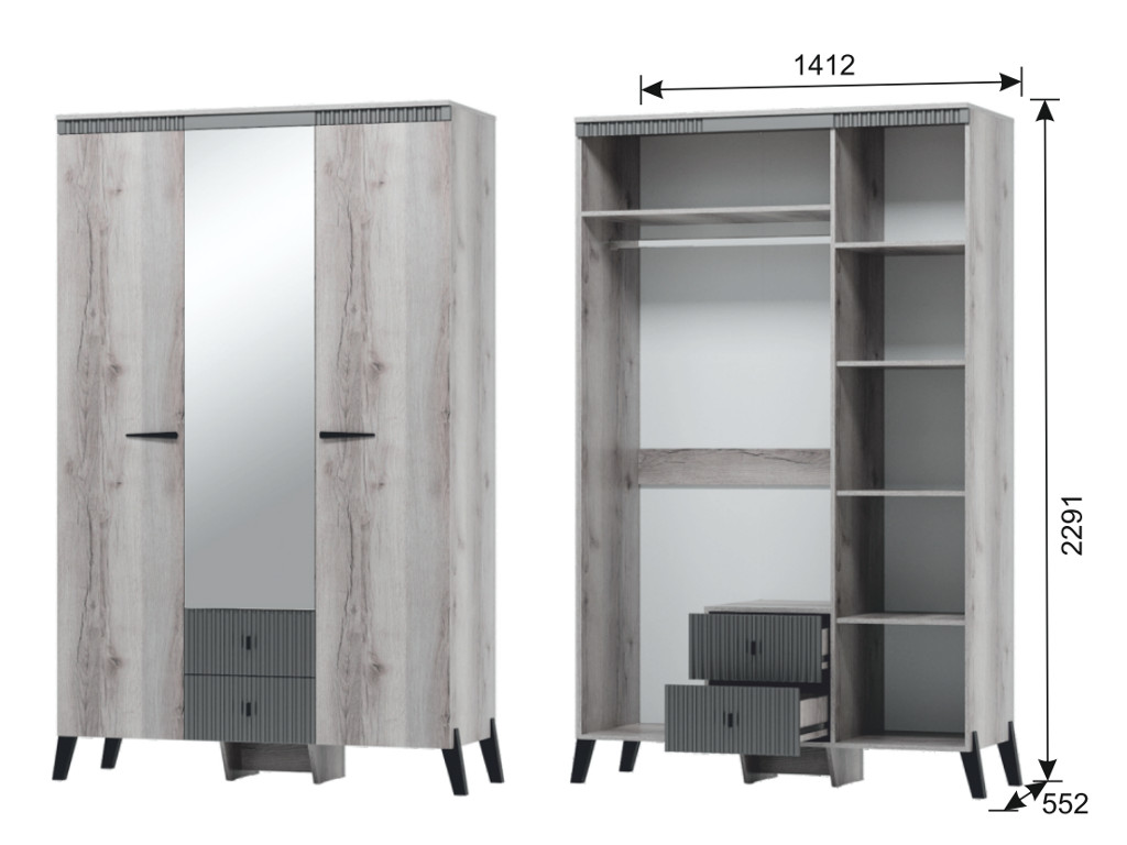 Шкаф трехдверный с ножками Ольга 3 дуб делано