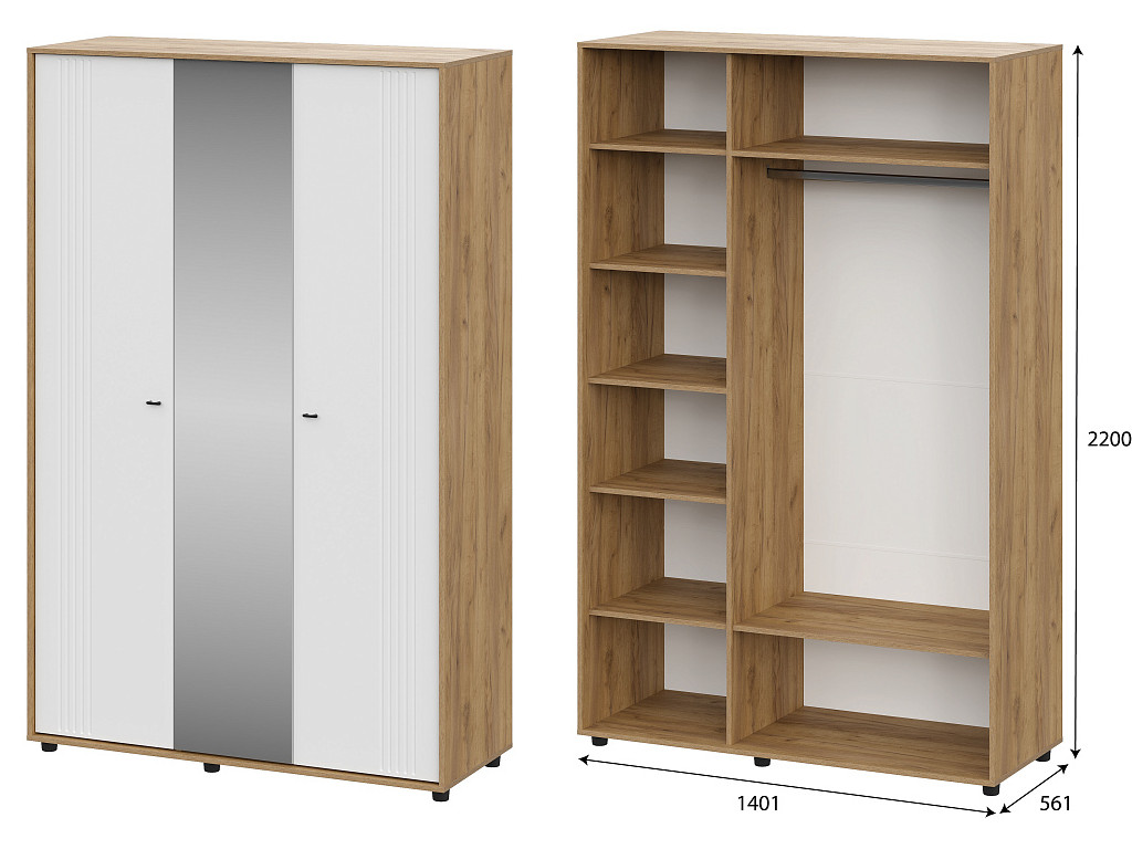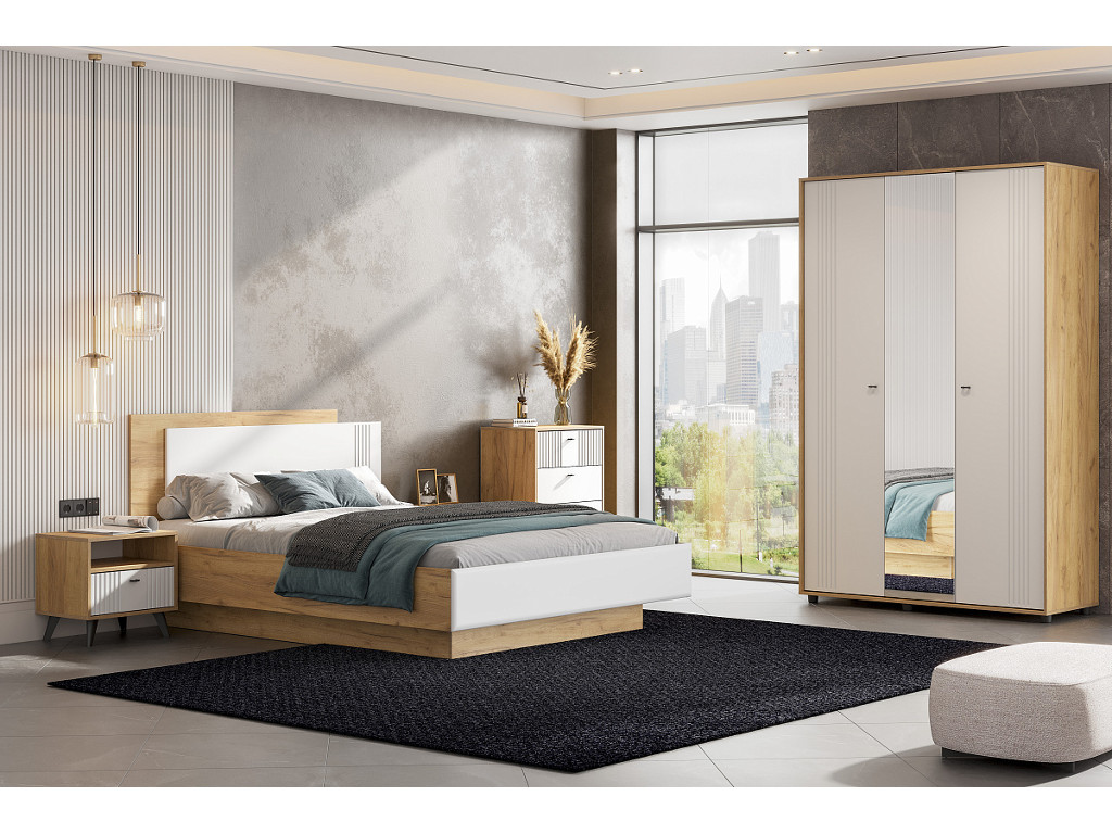 - Шкаф трехстворчатый Милан Дуб Золотой/Белый Матовый