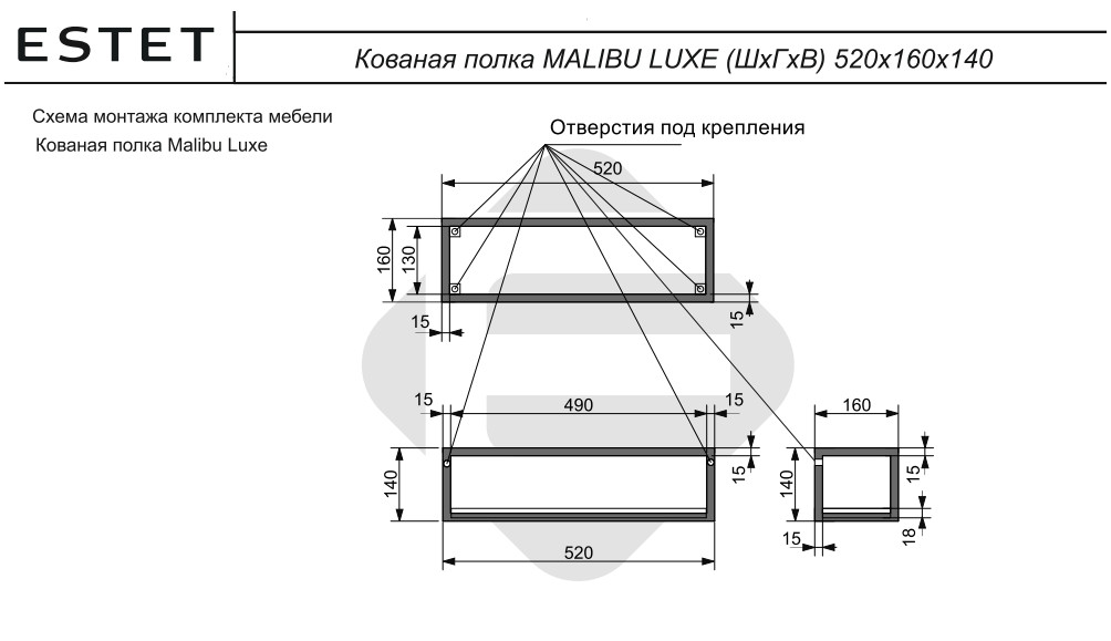 - Открытая полка из металлического профиля с основанием из массива дерева