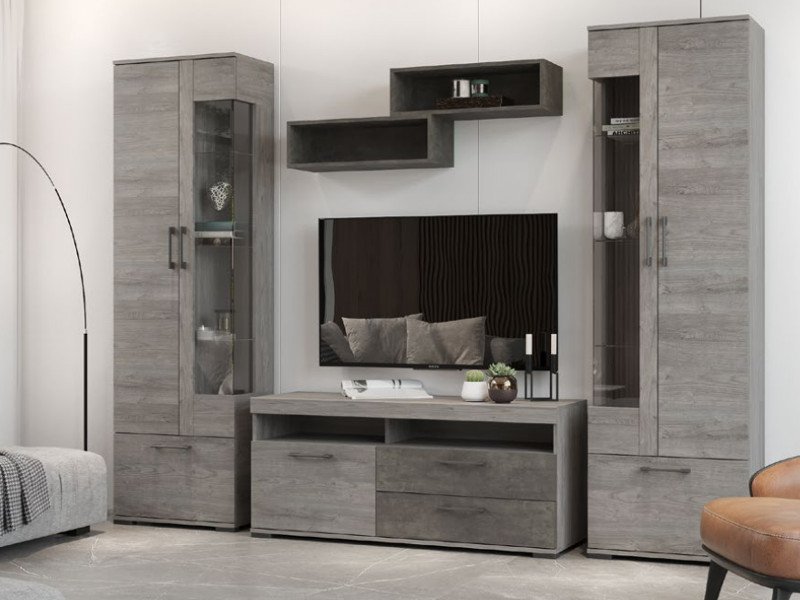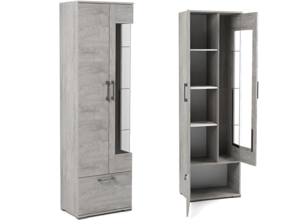 - Пенал Д-3л со стеклом левый Денвер Риббек серый