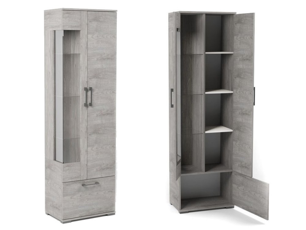 - Пенал Д-3п со стеклом правый Денвер Риббек серый
