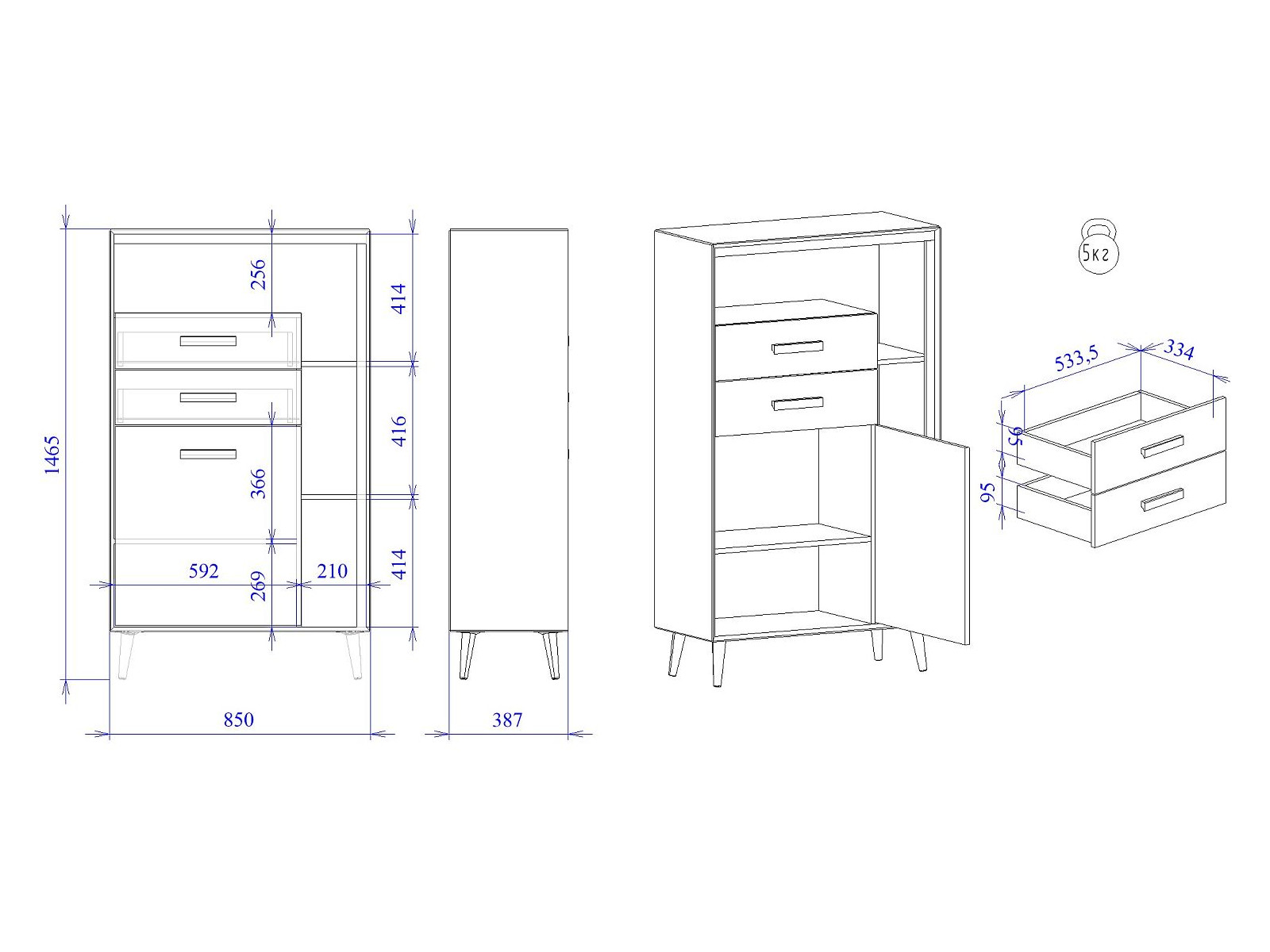 - Высота (мм) 1465
