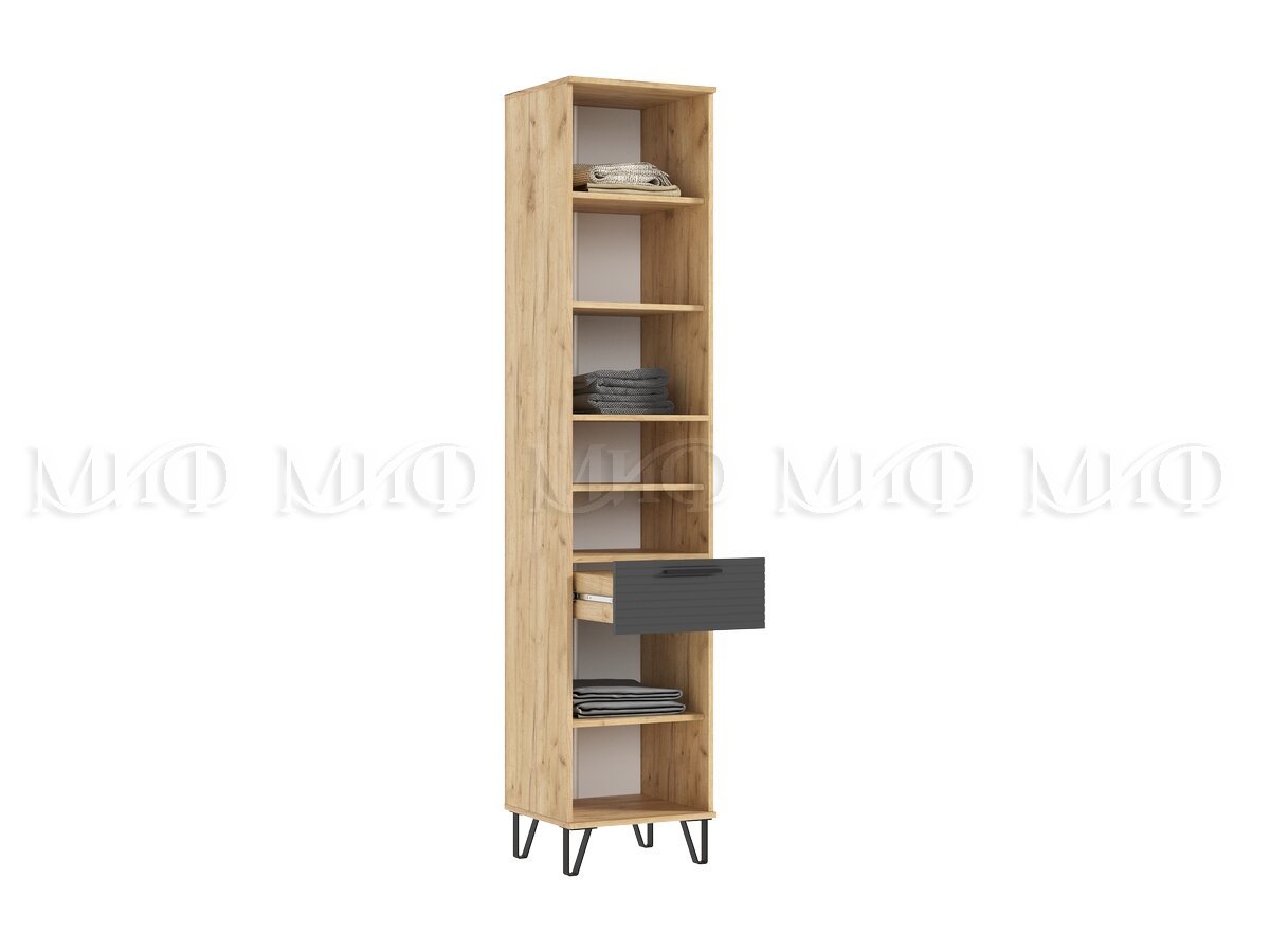 - Пенал открытый в прихожую Флэш Браш Графит, Дуб Крафт
