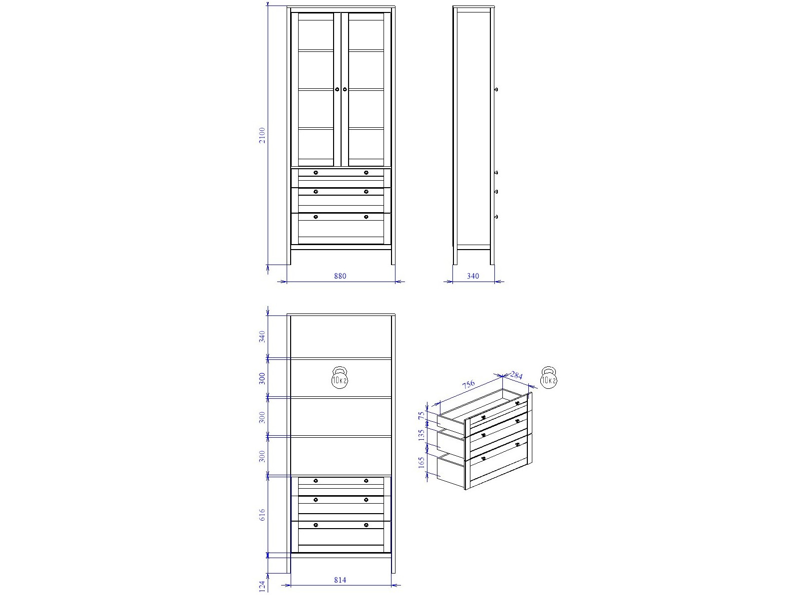 - Высота (мм) 2104